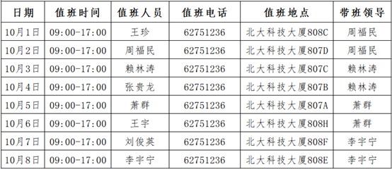 产业党工委、校产办2025年国庆节假期带值班计划表